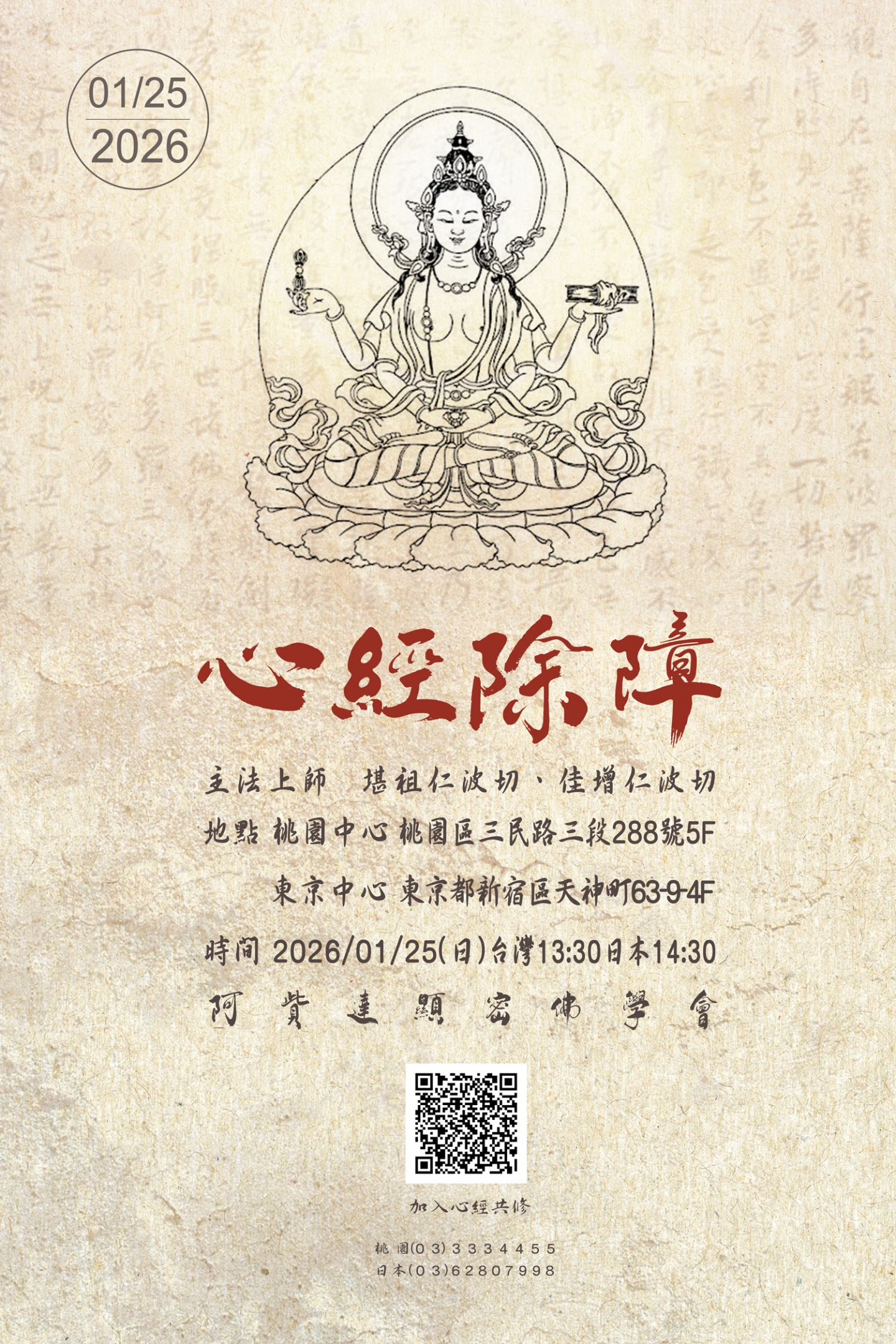 我們的《心經》法會有直播,會有幾百個人參加,每個人會念大概一百多部,假如有一百個人參加的話大家都會得到一萬多部心經的功德,這是不可思議的。念《心經》可以增長慈悲心與空性,如果對空性有所證悟的話很容易消除煩惱。我們很多的儀軌都有提到空性,例如觀空咒:嗡,桑巴瓦修打沙瓦打嗎,桑巴瓦修垛,杭,還有三三摩地、閉氣四釘等都是關於空性的。空性有十八種空性(註: 《大品般若經》說十八空:內空、外空、內外空,空空,大空,第一義空,有為空、無為空,畢竟空,無始空,散空,性空,自相空,諸法空,不可得空,無法空、有法空、無法有法空。龍樹《大智度論》有詳細解說),希望大家的心中十八種空性增長,希望我們現在就開始念誦《般若波羅蜜多心經》的功課,3遍、7遍、21遍大家可以自己選擇,法會當天我們一起迴向,阿彌陀佛!