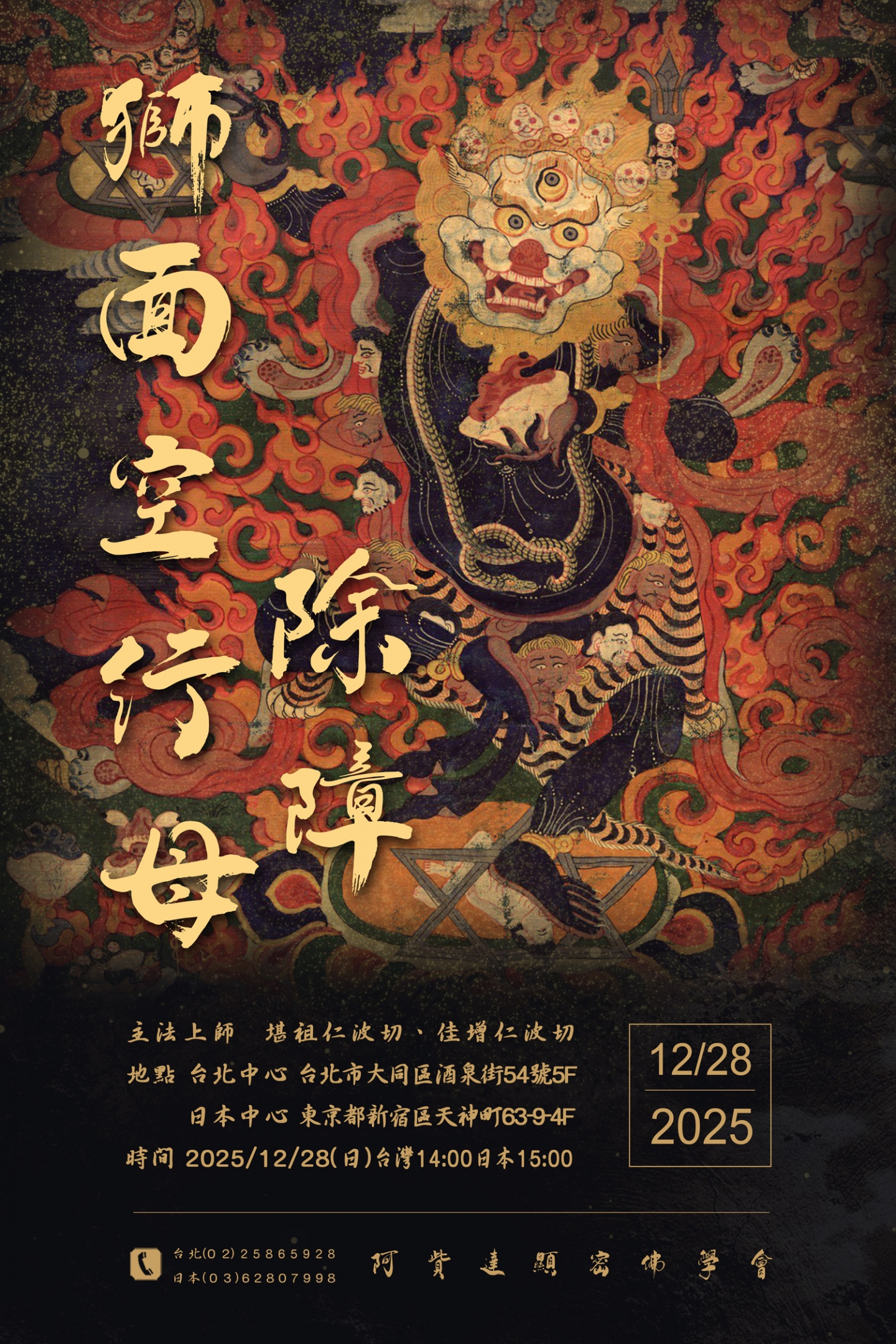 獅面空行母系佛學會每年三大除障法會之一,歡迎大家踴躍參與,共同遣除一切違緣障礙。