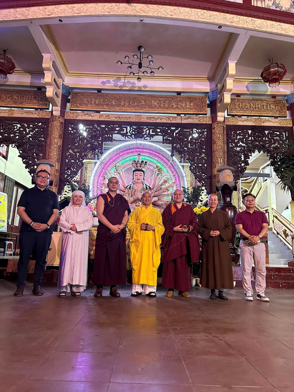Vietnam 越南/2024/3 因如成法師的特殊因緣,阿貲達佛學會堪祖仁波切與佳增仁波切一同開啟了越南首次弘法利生之旅!所到之處皆是雙手合十臉帶笑容虔誠的信眾,深深地感受到佛陀事業之深遠及廣大。 兩位上師在同奈省隆慶的隆太寺內為信眾布法、在平福省真成的圓明寺內為信眾布法祈福的同時,接受了眾多信眾的皈依。願此土地的人民離苦得樂,早證菩提。後參觀了隆成省規模弘大,大殿內供奉著巨大翡翠玉石所造的釋迦如來像的凱祥寺。另外與和慶寺、紅蓮寺等多位主持法師進行了溝通交流,行程順利且吉祥。